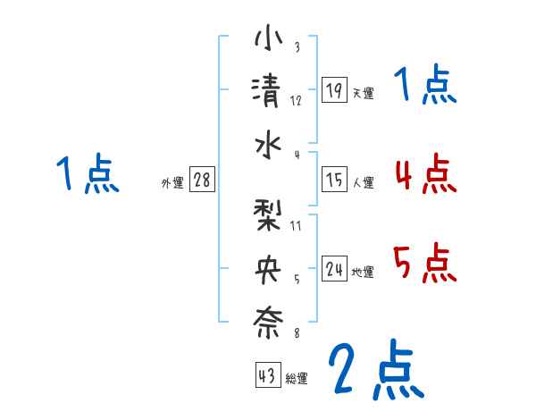 小清水梨央奈さんの画数の鑑定結果