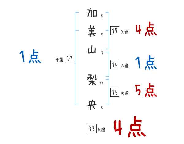 加美山梨央さんの画数の鑑定結果