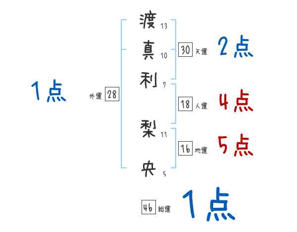 渡真利梨央さんの画数の鑑定結果