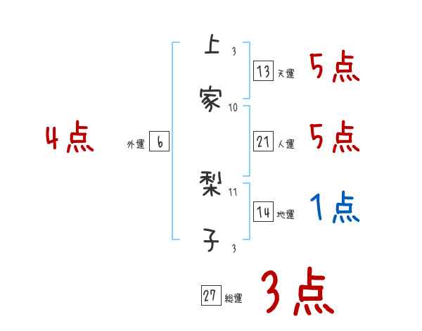 上家梨子さんの画数の鑑定結果