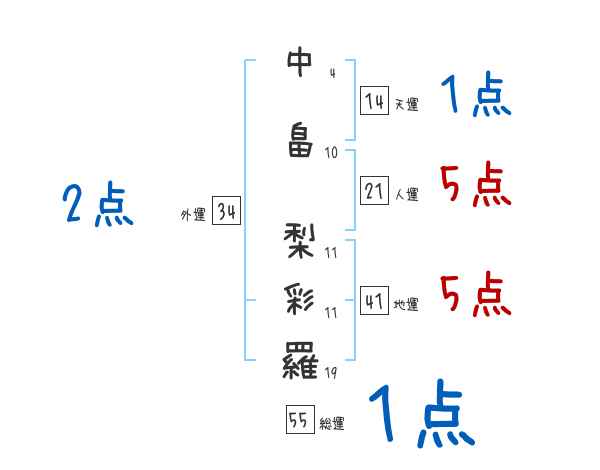 地運![]() | 中畠梨彩羅さんの地運は41画の5つ星!大志を抱き、目標に向かって実力を発揮し達成する。温和な性格。 個性を表す基礎的な運勢です。性格形成や対人関係、行動力など家庭環境に影響されます。主に誕生してから20歳くらいまでの若年期の運勢を表します。 |