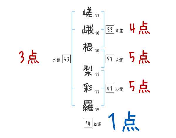 嵯峨根梨彩羅さんの画数の鑑定結果