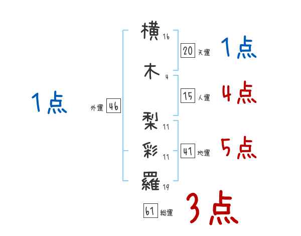 人運![]() | 横木梨彩羅さんの人運は15画の4つ星!人徳があり出世する。順調に物事を進め円満な人生。 性格や才能などを表す2番目に重要な運勢です。人間関係や協調性、社会的な成功に影響します。主に20歳から50歳ぐらいまでの中年期の運勢を表します。 |