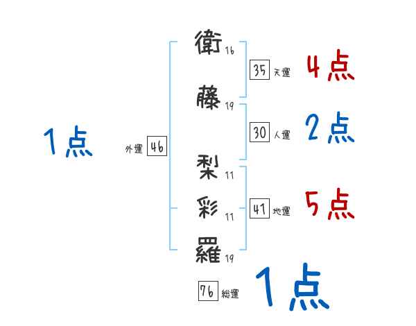 衛藤梨彩羅さんの画数の鑑定結果