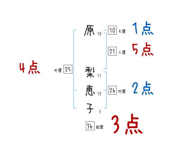 原梨恵子さんの画数の鑑定結果
