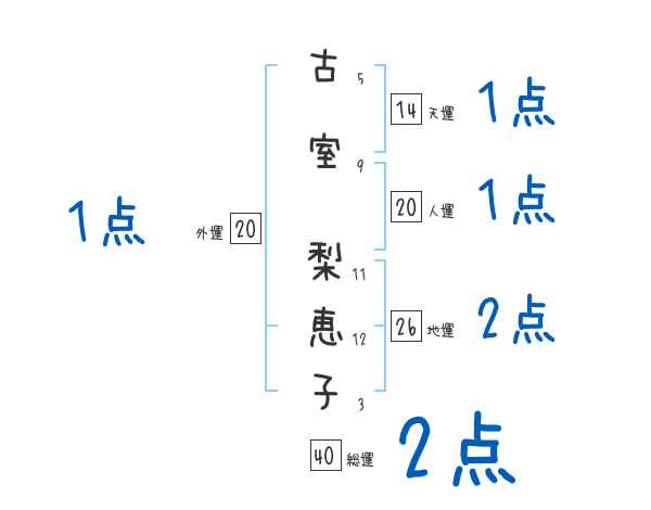 地運![]() | 古室梨恵子さんの地運は26画の2つ星!波瀾万丈かも。信頼できる人を大事にしましょう。 個性を表す基礎的な運勢です。性格形成や対人関係、行動力など家庭環境に影響されます。主に誕生してから20歳くらいまでの若年期の運勢を表します。 |