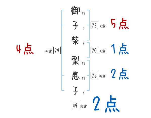 御子柴梨恵子さんの画数の鑑定結果