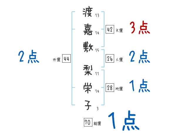 渡嘉敷梨栄子さんの画数の鑑定結果