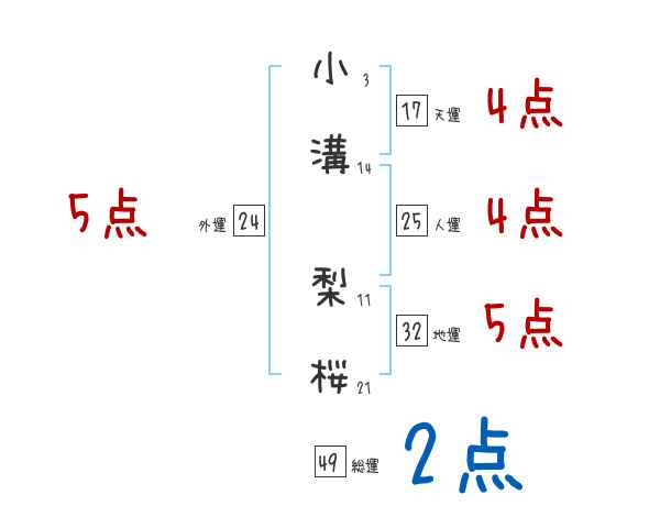 小溝梨桜さんの画数の鑑定結果