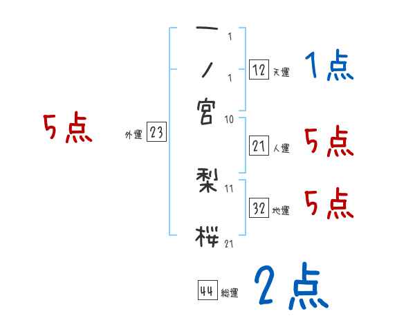 一ノ宮梨桜さんの画数の鑑定結果