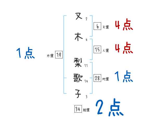 又木梨歌子さんの画数の鑑定結果