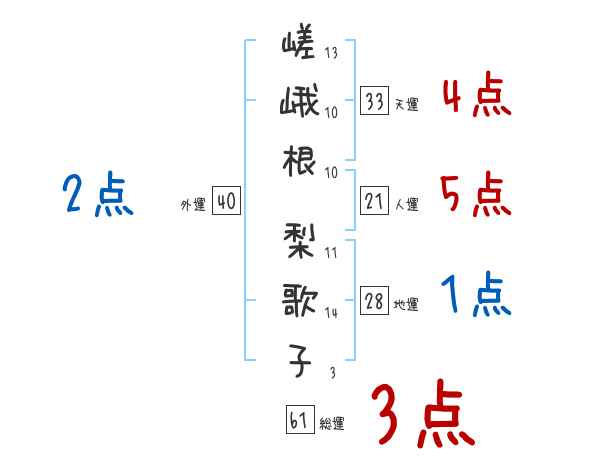嵯峨根梨歌子さんの画数の鑑定結果