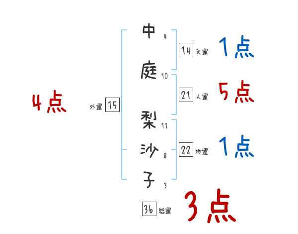 中庭梨沙子さんの画数の鑑定結果