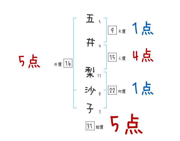 五井梨沙子さんの画数の鑑定結果