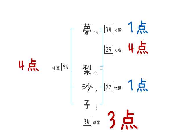 夢梨沙子さんの画数の鑑定結果