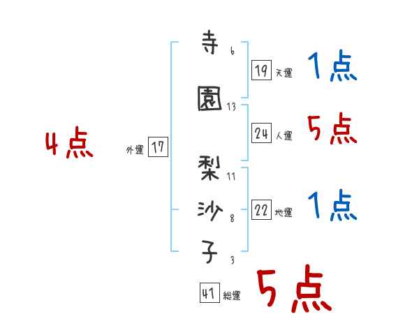 寺園梨沙子さんの画数の鑑定結果
