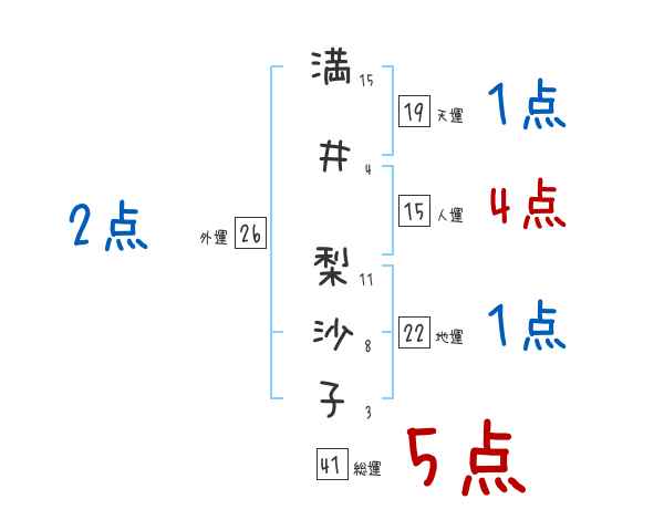 外運![]() | 満井梨沙子さんの外運は26画の2つ星!波瀾万丈かも。信頼できる人を大事にしましょう。 生活面を象徴する運勢です。外部から受ける影響力を表し、結婚運、家庭運や職場、環境への順応性を表します。 |