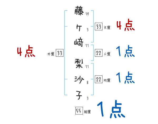 藤ヶ﨑梨沙子さんの画数の鑑定結果