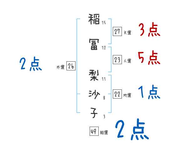 稲冨梨沙子さんの画数の鑑定結果