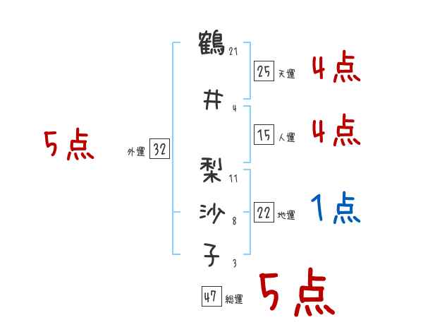 鶴井梨沙子さんの画数の鑑定結果