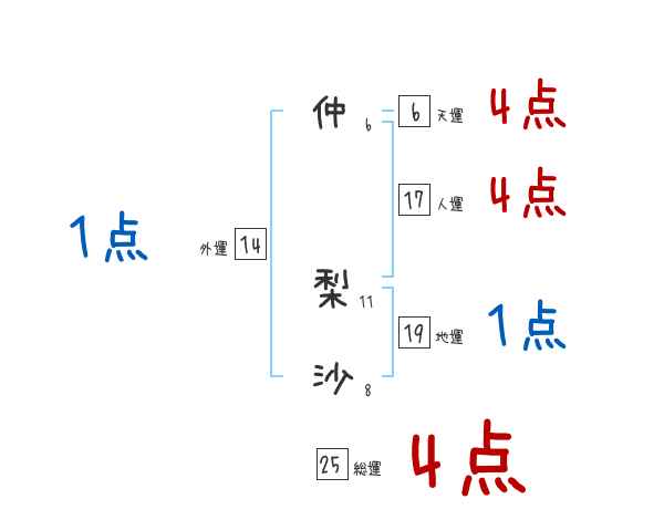 仲梨沙さんの画数の鑑定結果