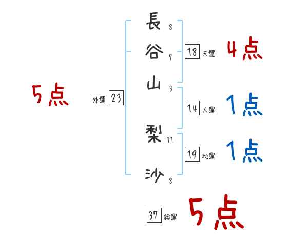 長谷山梨沙さんの画数の鑑定結果