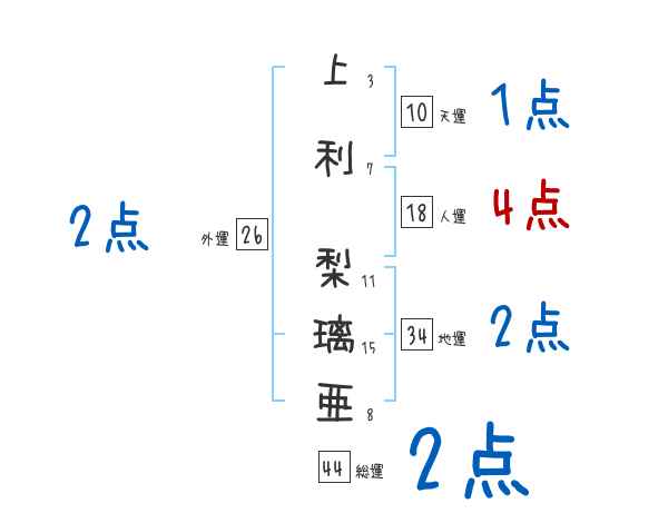 外運![]() | 上利梨璃亜さんの外運は26画の2つ星!波瀾万丈かも。信頼できる人を大事にしましょう。 生活面を象徴する運勢です。外部から受ける影響力を表し、結婚運、家庭運や職場、環境への順応性を表します。 |