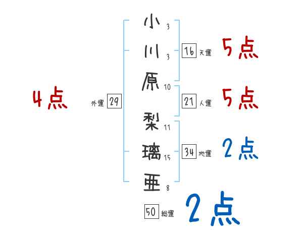 小川原梨璃亜さんの画数の鑑定結果