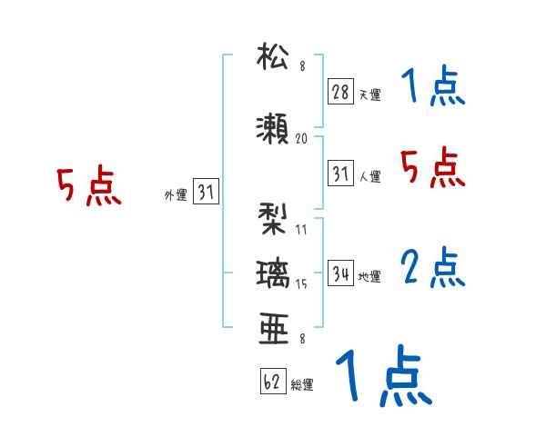 松瀬梨璃亜さんの画数の鑑定結果