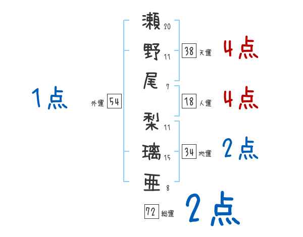 瀬野尾梨璃亜さんの画数の鑑定結果