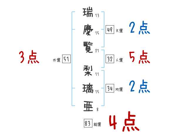 瑞慶覧梨璃亜さんの画数の鑑定結果