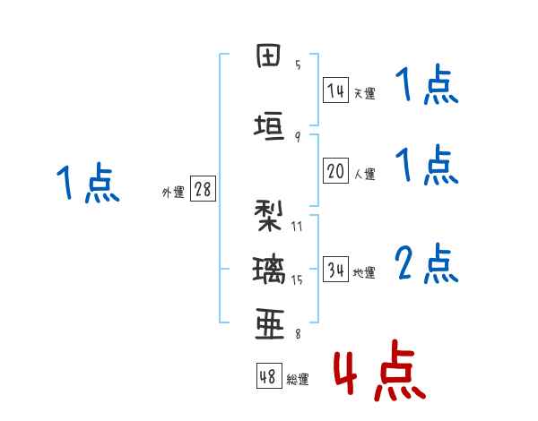 田垣梨璃亜さんの総運は48画の4つ星