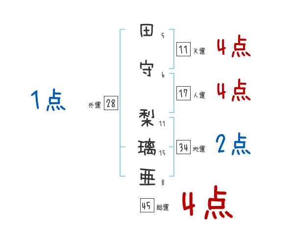 田守梨璃亜さんの画数の鑑定結果
