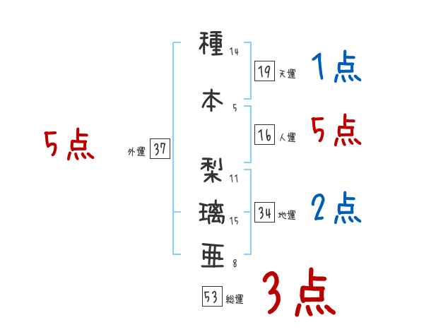 種本梨璃亜さんの画数の鑑定結果