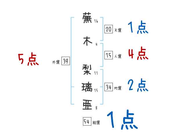 蕪木梨璃亜さんの画数の鑑定結果