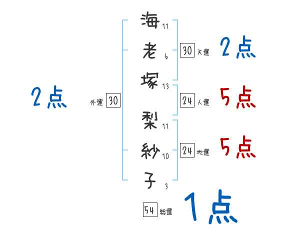 海老塚梨紗子さんの画数の鑑定結果