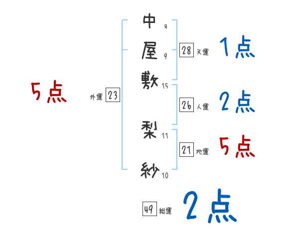 中屋敷梨紗さんの画数の鑑定結果