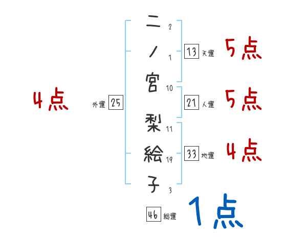 二ノ宮梨絵子さんの画数の鑑定結果
