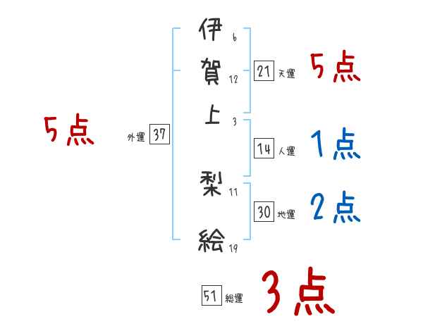 伊賀上梨絵さんの画数の鑑定結果