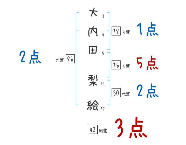 大内田梨絵さんの画数の鑑定結果