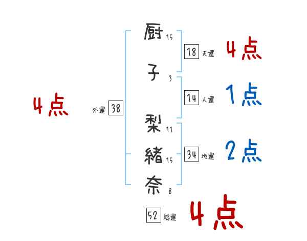 厨子梨緒奈さんの画数の鑑定結果