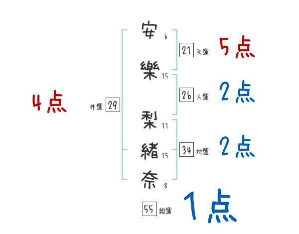 安樂梨緒奈さんの画数の鑑定結果