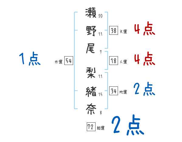 瀬野尾梨緒奈さんの画数の鑑定結果
