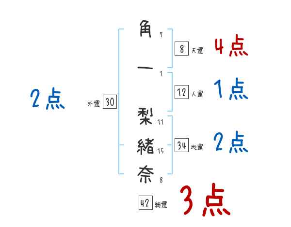 角一梨緒奈さんの画数の鑑定結果