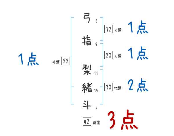 総運![]() | 弓指梨緒斗さんの総運は42画の3つ星!病気に注意。多芸であるが消極的でおとなしい。 あなたの人生を表す1番重要な運勢です。生涯を通じて影響する総合運となり、主に50歳以降の晩年期に影響を及ぼします。 |