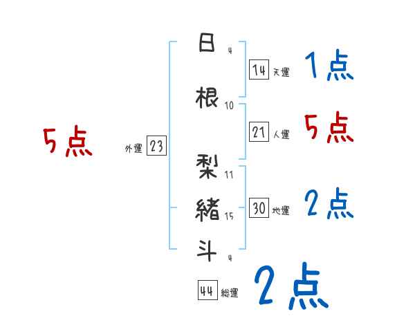 天運![]() | 日根梨緒斗さんの天運は14画の1つ星!人に対して優しいがストレスを溜め込みがち。人間関係のトラブルを避けるよう気をつけましょう。 家系が持つ宿命的な運勢を表します。祖先から受け継いだ苗字ですので自分の力が及びません。家柄を象徴します。 |