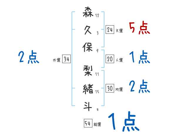 総運![]() | 森久保梨緒斗さんの総運は54画の1つ星!トラブルが多いかも。周りをよく見て協調して過ごしましょう。 あなたの人生を表す1番重要な運勢です。生涯を通じて影響する総合運となり、主に50歳以降の晩年期に影響を及ぼします。 |
