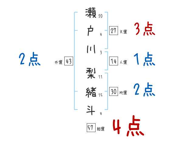瀬戸川梨緒斗さんの画数の鑑定結果