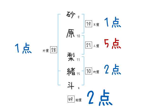 砂原梨緒斗さんの画数の鑑定結果
