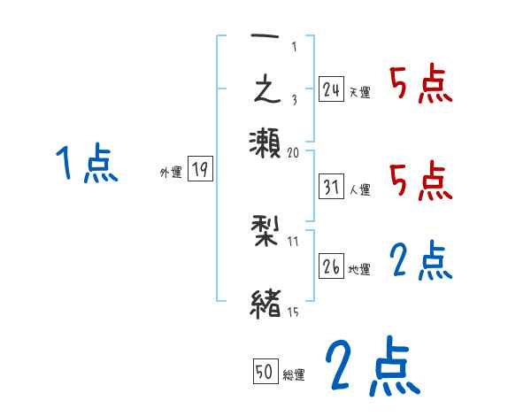 一之瀬梨緒さんの画数の鑑定結果